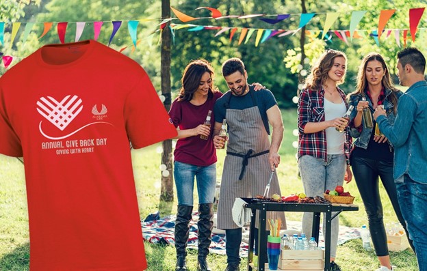 As part of a newly developed corporate social responsibility initiative, an insurance company instituted an annual “give back” day where employee groups volunteered in their communities. The company provided each participant with a Champion® Jersey Short Sleeve Tee in their corporate color and imprinted with the program logo and tagline to wear during their day of giving.